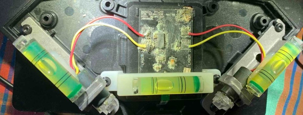 Merci à tous, Vraiment, cela ne vaut pas le coup de réparer un engin pareil, on fait beaucoup mieux maintenant surtout que je n'aurais plus l'occasion de poser du carrelage. Ce que je voulais savoir si on pouvait en déduire la tension d'alim, pour réutiliser les lasers sur ma table optique. Peut être il y a une indication directement sur les lasers? Sinon, celui que j'ai acheté se met au niveau automatiquement Amicalement.