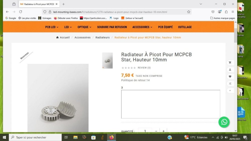Bonjour Je voudrais attirer l'attention sur le fait que ces petits modules d'alimentation ne sont pas des générateurs de courant . Une faible variation du réglage de la tension peut faire varier dans de grandes proportions le courant dans la led . voir ici https://www.microscopies.com/DOSSIERS/Magazine/Articles/JMC-LEDS-2/LEDS2.htm A défaut un fusible en série avec la LED me parait indispensable : par exemple pour LED 3 watts fusible 1,5 A, pour 10 watts 3,15 A ou 4 A etc... Amitiés JMC -