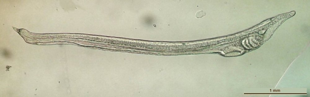 Bonjour Très instructif ...Le petit vers évoque un nématode, un détail de la tête à plus fort grossissement pourrait aider à identifier l'espèce .. (pas facile je sais, ça se tortille beaucoup !) . Amitiés JMC